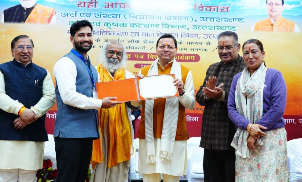 मुख्यमंत्री श्री पुष्कर सिंह धामी ने गुरूवार को मुख्यमंत्री कैम्प कार्यालय स्थित मुख्य सेवक सदन में आयोजित कार्यक्रम में लोक सेवा आयोग के माध्यम से चयनित अर्थ एवं संख्या, कृषि एवं उद्यान तथा महिला सशक्तिकरण एवं बाल विकास विभाग के 178 अभ्यर्थियों को नियुक्ति पत्र प्रदान किए। जिसमें अर्थ एवं संख्या विभाग के 117, कृषि विभाग के 12 उद्यान विभाग के 30 तथा महिला सशक्तिकरण एवं बाल विकास विभाग के 19 अभ्यर्थी शामिल है। उन्होंने नवनियुक्त अभ्यर्थियों को बधाई देते हुए विश्वास व्यक्त किया कि सभी ईमानदारी, निष्ठा एवं समर्पण के साथ दायित्वों का निर्वहन कर उत्तराखंड को विकसित, आत्मनिर्भर एवं देश के अग्रणी राज्यों में शामिल करने के संकल्प को साकार करने में महत्वपूर्ण भूमिका निभाएँगे।