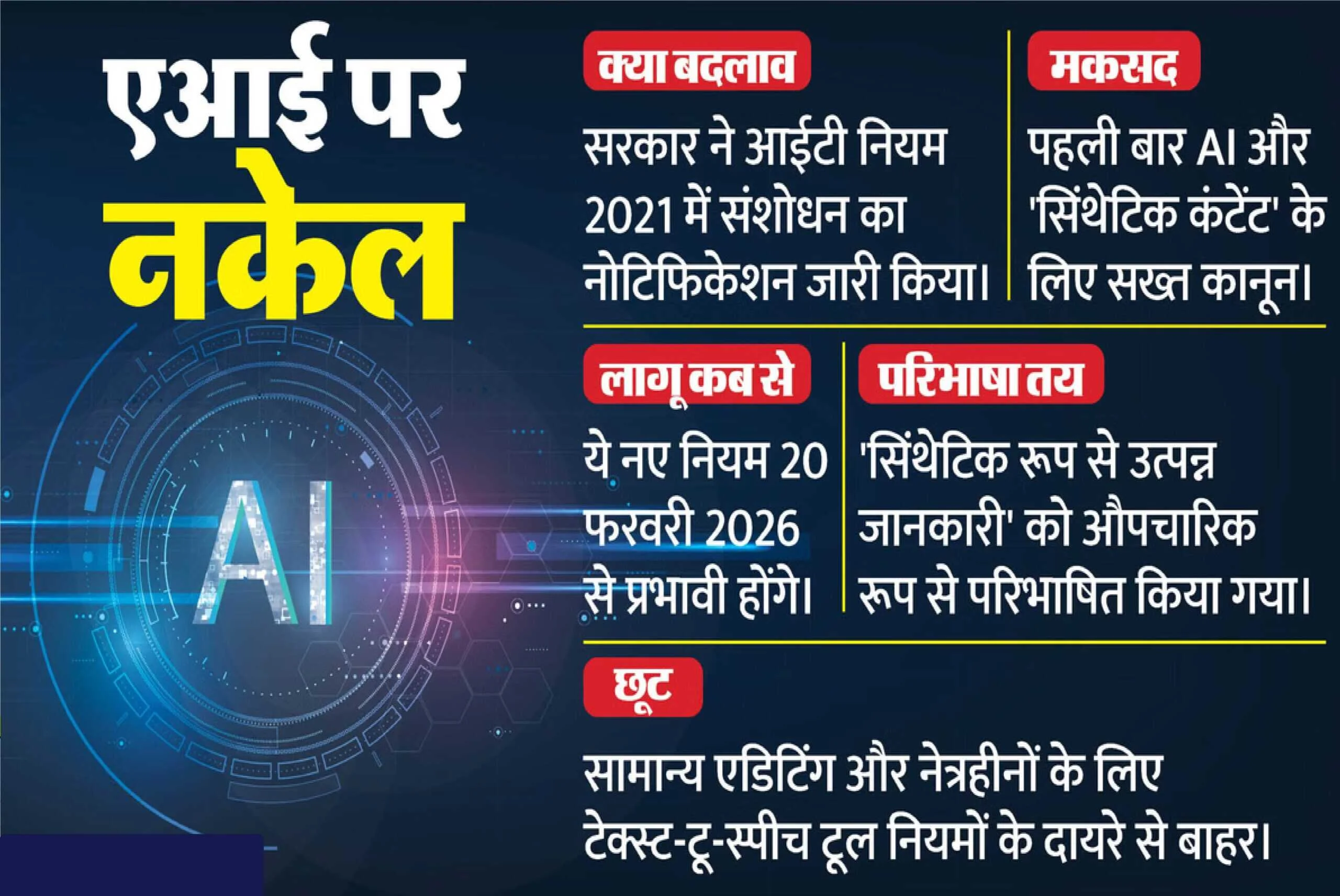 AI Content Label Rule इलेक्ट्रॉनिक्स और सूचना प्रौद्योगिकी मंत्रालय की AI कंटेंट को लेकर आई नई गाइड्लाइन का पालन करना अनिवार्य होगा. 10 फरवरी को जारी नोटिफिकेशन के मुताबिक, सोशल मीडिया प्लेटफॉर्म्स जैसे यू-ट्यूब, इंस्टाग्राम, स्नैपचैट, ट्विटर और फेसबुक को अपने प्लेटफॉर्म पर शेयर किए जाने वाले AI कंटेंट पर लेबल लगाना होगा. इसके साथ ही अगर कोई डीपफेक वीडियो या फोटो अपलोड होता है, तो उसे 3 घंटे में हटाने होगा. मंत्रालय ने इसके लिए IT रूल्स 2021 में बदलाव किया है.