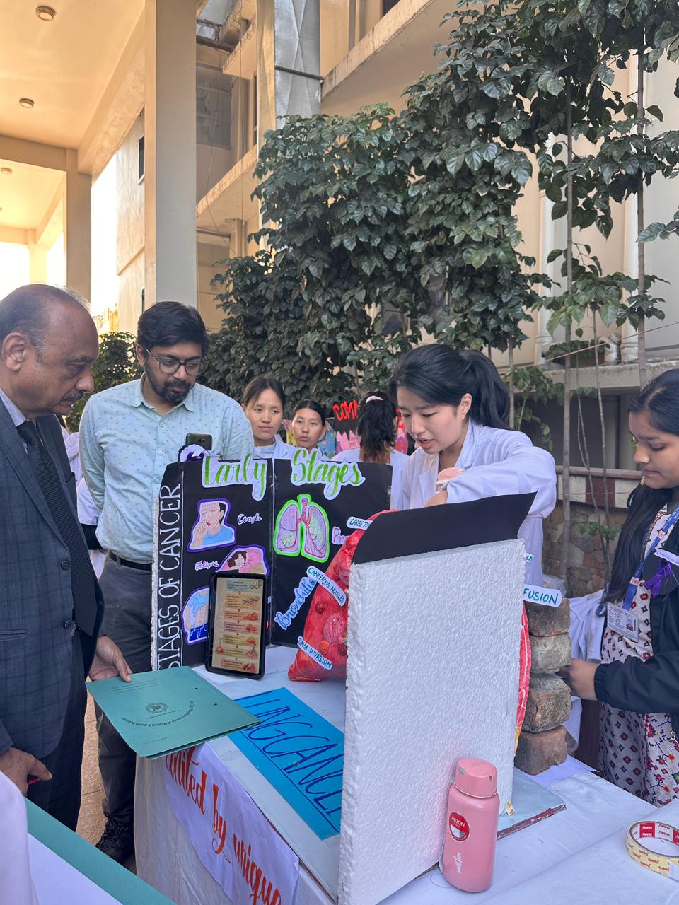 नर्सिंग छात्राओं द्वारा प्रस्तुत रोल प्ले के माध्यम से कैंसर के कारणों, प्रारंभिक लक्षणों, भ्रांतियों और समय पर उपचार के महत्व को प्रभावशाली ढंग से प्रस्तुत किया गया। इसके बाद स्वास्थ्य शिक्षा सत्र में सामान्य कैंसर, जोखिम कारक, बचाव के उपाय एवं उपलब्ध स्क्रीनिंग कार्यक्रमों की जानकारी दी गई, जिसमें चार्ट और पोस्टर का भी उपयोग किया गया।