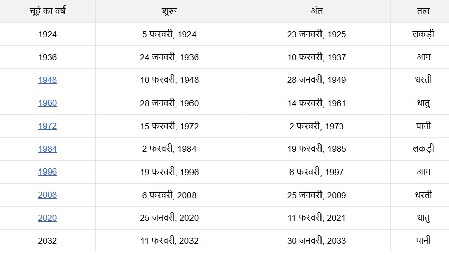 चीनी ज्योतिषीय चक्र में चूहे को पहला स्थान प्राप्त है. यह जीव नई शुरुआत, जीवन शक्ति और तेज बुद्धि का प्रतीक है. चूहे के वर्ष में जन्म लेने वाले व्यक्ति स्वभाव से चालाक, अनुकूलनीय और तेज दिमाग के होते हैं. हर 12 वर्ष में चूहे का साल आता है. चूहे के वर्ष हैं, 1936, 1948, 1960, 1972, 1984, 1996, 2008, 2020 और 2032.चीनी ज्योतिषीय चक्र में पहला स्थान चूहे को प्राप्त है. चूहे के वर्ष में जन्म लेने वाले व्यक्ति स्वभाव से काफी बुद्धिमान और रणनीतिकार होते हैं. जानिए इसकी खासियत ?