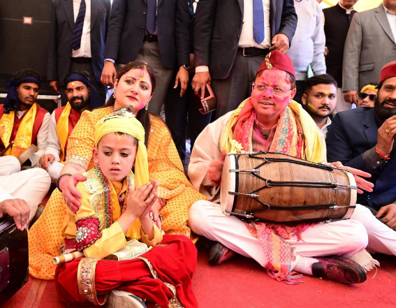 Holi Celebration देशभर में होली के रंग और अजब गजब नजारे दिखने लगे हैं उत्तराखंड की पहाड़ी होली का कुछ अलग ही अंदाज है और उनका मिजाज भी अलग है.. देहरादून में मुख्यमंत्री आवास में आज मुख्यमंत्री पुष्कर सिंह धामी के साथ होल्यरों ने  जमकर अमीर गुलाल उड़ाए और मस्ती ऐसी छाई की खुद मुख्यमंत्री भी पहाड़ी वाद्य यंत्रों को थाप देते और नचाते नजर आए….लोक गीतों की धुनों के बीच सीएम आवास में होली के रंग और मस्ती की फुहार जमकर बरसी और खुद सरकार रंगों में सराबोर दिखाई दी….आइए आपको दिखाते हैं मुख्यमंत्री का होली सेलिब्रेशन