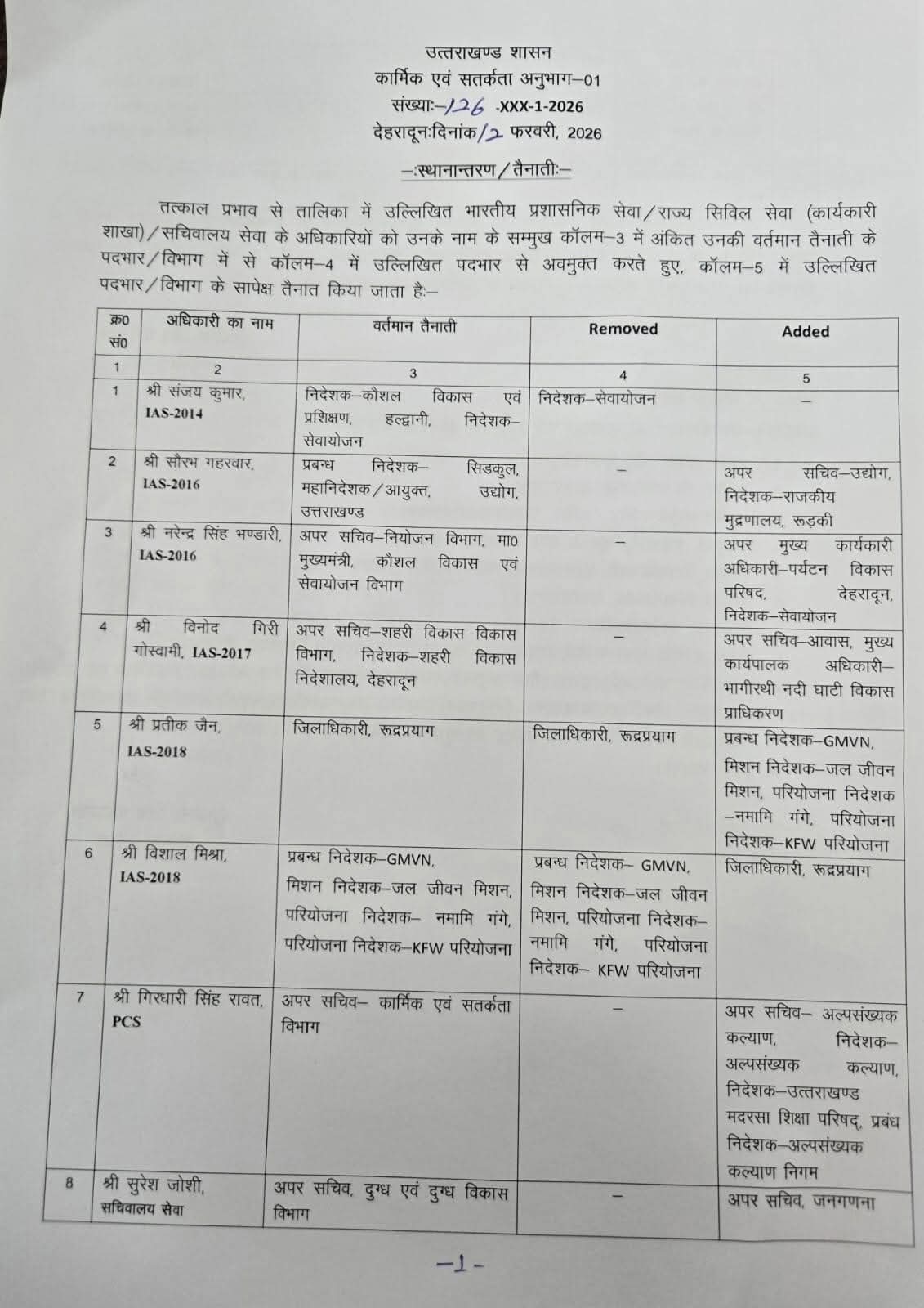 उनकी जगह पर विशाल मिश्रा को डीएम रुद्रप्रयाग का चार्ज दिया गया है आई आपको दिखाते हैं इस लिस्ट में और कौन-कौन से इस और पीसीएस अधिकारी शामिल है