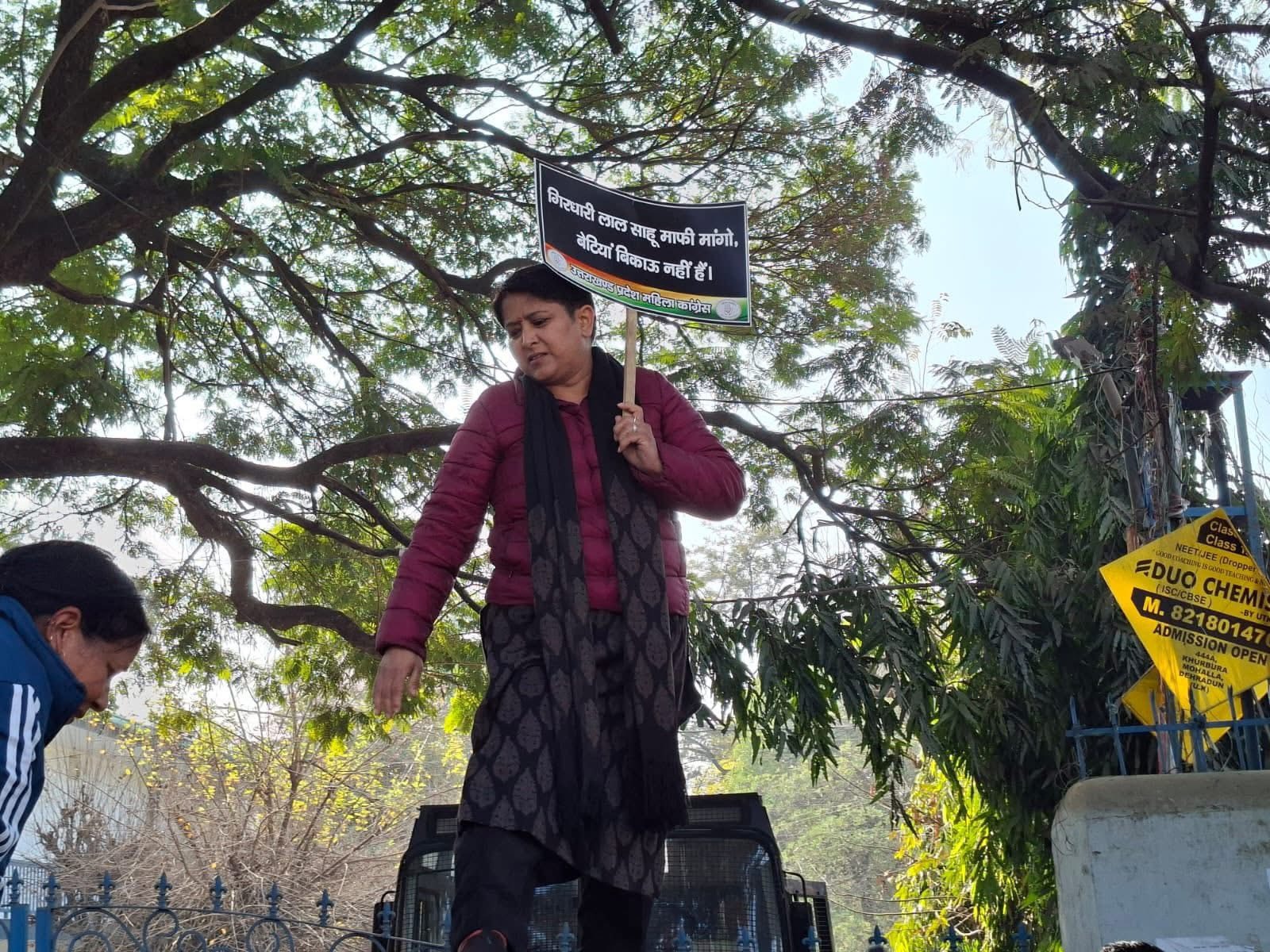Jyoti Rautela नया साल भाजपा के लिए कोई अच्छी शुरुआत करता नहीं दिख रहा है। दिसंबर में भारी हंगामा वायरल वीडियो काण्ड से होते होते त्रिपुरा के स्टूडेंट एंजेल चकमा की मौत से सवाल खड़े कर गया तो वहीँ अब अंकिता भंडारी की आंच के बीच गिरधारी लाल साहू ने जुबानी रायता फैला कर पार्टी को असहज कर दिया जिसके बाद कांग्रेस ने मोर्चा खोल दिया और जमकर बवाल काटा। अंकिता भंडारी हत्याकांड में शामिल वीआईपी के खिलाफ कानूनी कार्रवाई किये जाने की मांग एवं महिला सशक्तिकरण एवं बाल विकास मंत्री रेखा आर्य के पति गिरधारी लाल साहू द्वारा महिलाओं के सम्बन्ध में दिये गये आपत्तिजनक बयान के खिलाफ आज प्रदेश महिला कांग्रेस अध्यक्ष ज्योत रौतेला के नेतृत्व में महिला कांग्रेस कार्यकर्ताओं ने मंत्री रेखा आर्य के यमुना कॉलोनी स्थित आवास का घेराव कर अंकिता भंडारी हत्याकांड में शामिल वीआईपी और गिरधारी लाल साहू के खिलाफ कड़ी कार्रवाई की मांग की।हांलाकि साहू ने मामला बिगड़ता देख माफ़ी की औपचारिकता करते हुए इनको कांग्रेस की साजिश करार दिया है।