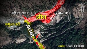 SYANACHATTI LAKE उत्तराखंड के उत्तरकाशी जिले से एक चिंताजनक खबर सामने आई है, स्यानाचट्टी क्षेत्र में यमुना नदी का अचानक प्रवाह रुकने के कारण वहां एक झील का निर्माण हो गया है, जिससे स्थानीय आबादी और बुनियादी ढांचे को खतरा पैदा हो गया है। इस घटना के कारण आसपास की सड़कों, पुलों और भवनों में पानी घुसने लगा है, जिसको देखते हुए पुलिस और एसडीआरएफ की टीम ने तुरंत ही क्षेत्र को खाली करवाया है।