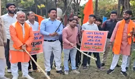 शिवसेना उप राज्य प्रमुख पप्पू तिवारी के नेतृत्व में कार्यकर्ताओं ने लठ-पूजन के बाद, ‘जहां मिलेंगे बाबू सोना छोड़ देंगे कोना कोना’ का नारा लगाते हुए हुंकार भरी. उन्होंने कहा कि 14 फरवरी को मनाया जाने वाला वैलेंटाइन डे भारतीय संस्कृति और परंपरा का हिस्सा नहीं है. शिवसैनिकों ने चेतावनी दी है कि यदि इस दिन पार्कों, होटलों, रेस्टोरेंट या धार्मिक स्थलों के आसपास कोई भी प्रेमी युगल अश्लीलता फैलाते हुए पकड़ा गया, तो उनके खिलाफ सख्त कार्रवाई की जाएगी.